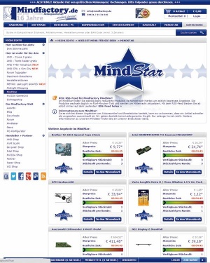 ■ Mindfactory (www.mindfactory.de). Spletna trgovina Mindfactory deluje že 17 let, zato njene snovalce vsekakor lahko označimo za bolj izkušene. Tudi v tej spletni trgovini bomo našli cel kup cen, ki so bistveno ugodnejše kot pri domačih računalniških trgovcih in trgovcih z zabavno elektroniko. Cenovne šoke in presenečenja podkrepijo še časovno omejene akcije različnih izdelkov. Največja pomanjkljivost trgovine Mindfactory je strošek poštnine, ki je za pošiljanje v Slovenijo okroglih 30 evrov na posamezen paket. Nakup drobnarij se torej ne izplača, pri večjih naročilih pa stroški pošiljanja postanejo znosni.