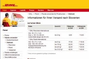 Ne le Angleži, tudi Nemci pogosto pozabijo, da so pod Avstrijo države, ki sodijo v EU. Slednje je še posebej očitno na spletni dražbi eBay.de, kjer prodajalci pogosto pozabijo označiti, da je moč posamezen izdelek poslati tudi v Slovenijo. V tem primeru vam predlagamo, da se s pošiljateljem dogovorite za pošiljanje prek ponudnika DHL, ki ima razmeroma ugodne cene dostave v Slovenijo. Če boste ustrezne obrazce izpolnili prek spleta, so cene še ugodnejše, pa še pošiljatelj nima dodatnega dela. Cenik storitev DHL najdete na spletni povezavi www.dhl.de/de/paket/privatkunden/international/laenderseiten/slowenien.html.