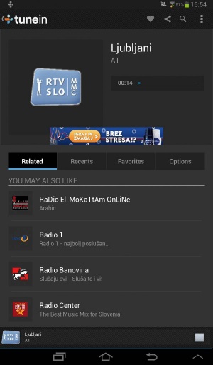 TuneIn Radio je ena izmed najbolj priljubljenih aplikacij za poslušanje radijskih postaj na androidnih mobilnikih. Razlogi za to so očitni, saj lahko uporabnik izbira med kar 70.000 različnimi radijskimi postajami z vsega sveta. Vse od Avstralije pa do Zimbabveja. Aplikacijo krasi odličen in preprost grafični vmesnik, ki omogoča nadvse enostavno uporabljanje in iskanje želene radijske postaje. Te lahko filtriramo na kar nekaj različnih načinov, in sicer po kategoriji (glasba, novice, šport ...), zvrsti glasbe (rock, pop, oldies ...) in celo državi oziroma jeziku.