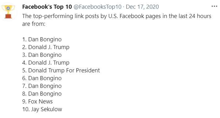 Trump je na socialnih omrežjih vseeno izredno priljubljen, predvsem v ZDA. Med desetimi najbolj ogledanimi povezavami, ki so jih uporabniki objavili na Facebooku, so kar trije taki, ki vsebujejo besedno zvezo Donald Trump.