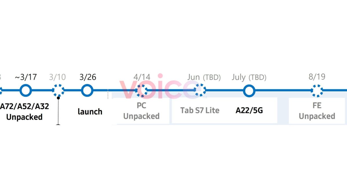 Ta naj bi bila avgusta, omenja se devetnajsti avgust, ko bi lahko Samsung imel še en dogodek Unpacked. Še pred tem naj bi sredi aprila predstavili nove prenosnike, poleg prenosnikov z Windows tudi prenosnike Galaxy Chromebook. Junija naj bi prišla nova tablica Galaxy Tab S7 Lite, mesec zatem pa telefon Galaxy A22.