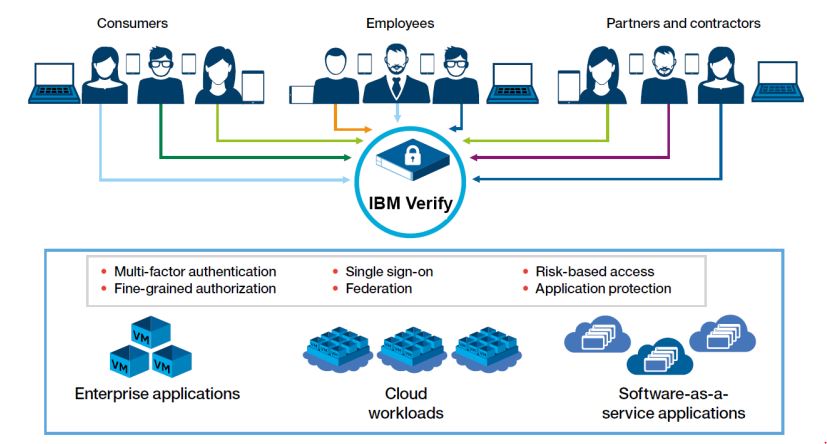 IBM Security Verify® je modularna platforma za upravljanje dostopov do spleta, mobilnih naprav in oblaka. Omogoča večfaktorsko overjanje, lažje uveljavljanje digitalnih certifikatov, preverjanje pristnosti na podlagi tveganj, zaščito spletnih aplikacij in združevanje identitet. Na voljo je za namestitev v lokalnem informacijskem okolju ali oblaku, dopušča tudi možnost namestitve v Docker kontejnerje in upravljanje s Kubernetesom.
