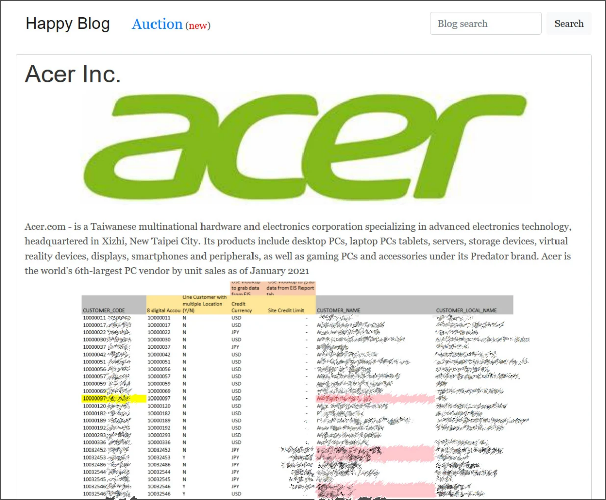 Acer so napadli minuli teden, po neuradnih podatkih pa so izrabili ranljivost v Exchangeu, ki je pošteno pretresla informacijski svet in Microsoft celo prepričala, da je izdal izredni popravek izven ustaljenega urnika. Napadalci so pridobili nadzor nad računalniki v Acerju, ukradli podatke, jih del priobčili na svetu in zaklenili. Od podjetja sedaj pričakujejo odkupnini v obliki neizsledljive kriptovalute monero.