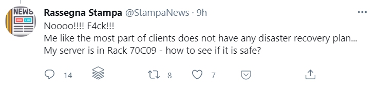 Šef podjetja OVHcloud priporoča, da stranke sledijo svojemu načrtu za take primere. Torej - naj uporabijo rezervno kopijo, tako ali drugačno.