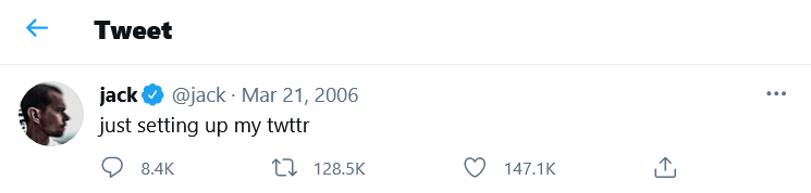 Jack Dorsey, ustanovitelj Twitterja, prodaja svoj prvi tvit. Leta 2006, ko je Twitter nastal, je zapisal samo postavljam svoj twittr (“just setting up my twttr”), kar je prvi tvit v zgodovini. Sedaj išče novega lastnika, ki bo moral zanj odšteti vsaj dva milijona evrov, kolikor so trenutno najvišje ponudbe.