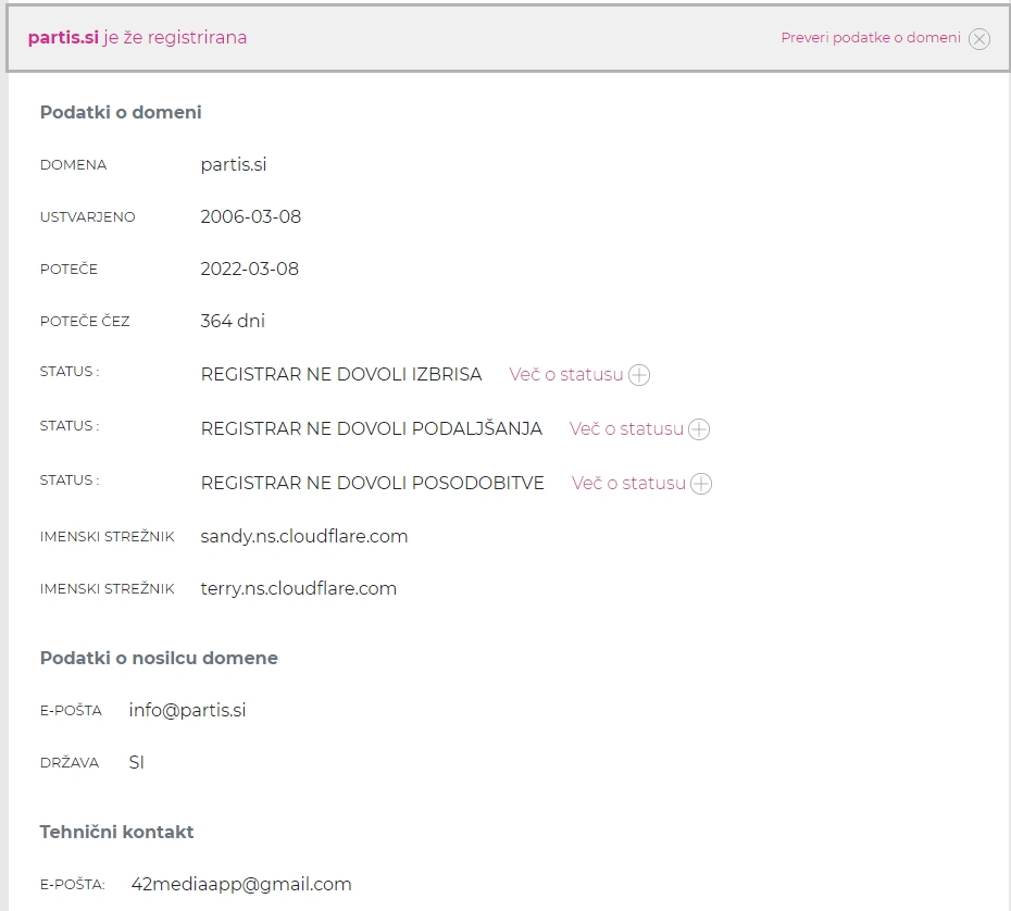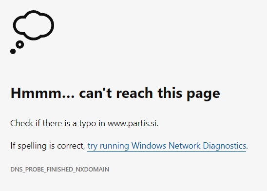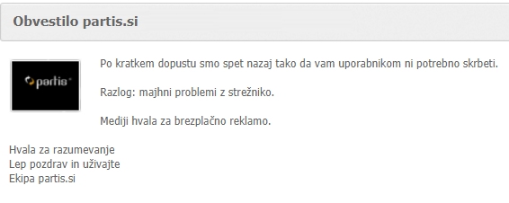 Dodano ob 11:15: Partis.si ponovno deluje, "pozabljivec" je domeno že podaljšal. Za eno leto.