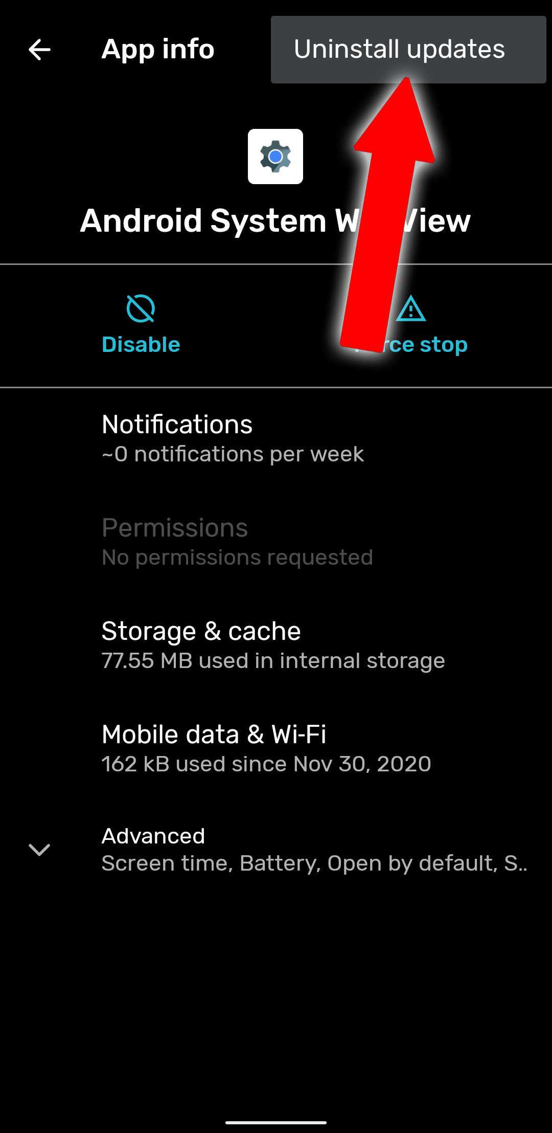Če imate tovrstne težave (pri Monitorju jih nimamo) se je težave najbolje lotiti tako, da v nastavitvah med Aplikacijami poiščete »Android System Webview« in odnamestite nadgradnje. Sistema s tem ne boste dokončno pobrisali, ampak telefon le prepričali, naj uporabi različico, ki je bila že tovarniško nameščena.